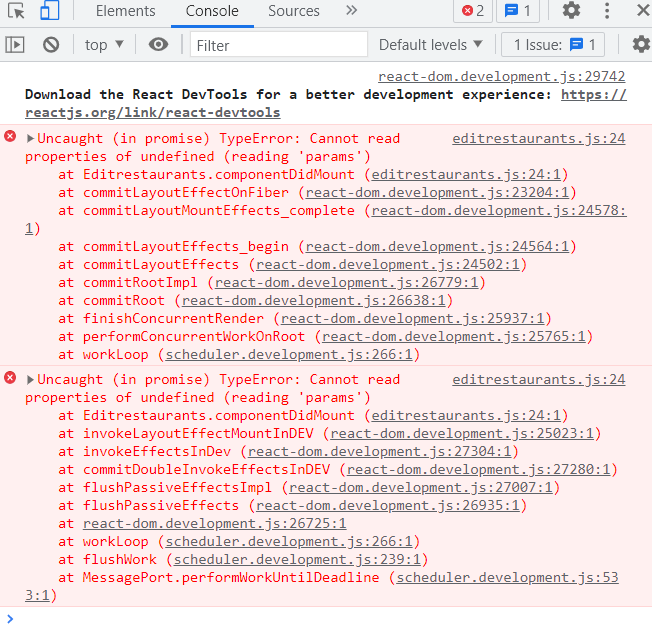 Em gặp lỗi này khi cố lấy id của người dùng từ url(http://localhost:3000/edit/1).Đây là lệnh lấy id của em: