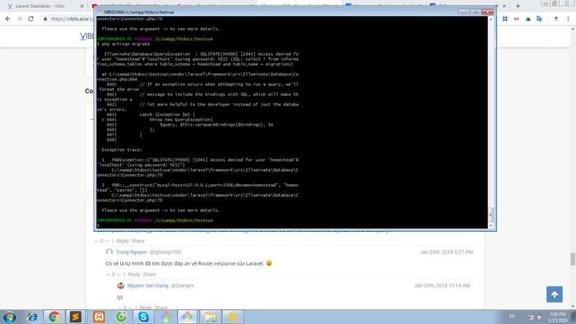 Tác giả cho hỏi chút. Mình chạy php artisan migrate nó bị lỗi này thì sửa như nào