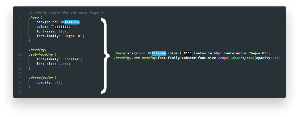 Bây giờ, hãy để di chuyển đến CSS thực tế. Điều này thường bị bỏ qua. Thông thường, bạn có thể giảm kích thước các gói CSS của mình bằng cách sử dụng các thành phần HTML chính xác. Giả sử bạn có một tiêu đề với bộ quy tắc sau: