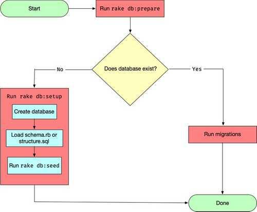 Khi rake task này được thực, nếu cơ sở dữ liệu tồn tại, nó sẽ chạy tất cả cả migrations đang tồn đọng. Còn nếu cơ sở dữ liệu không tồn tại, nó sẽ chạy rake task db:setup.