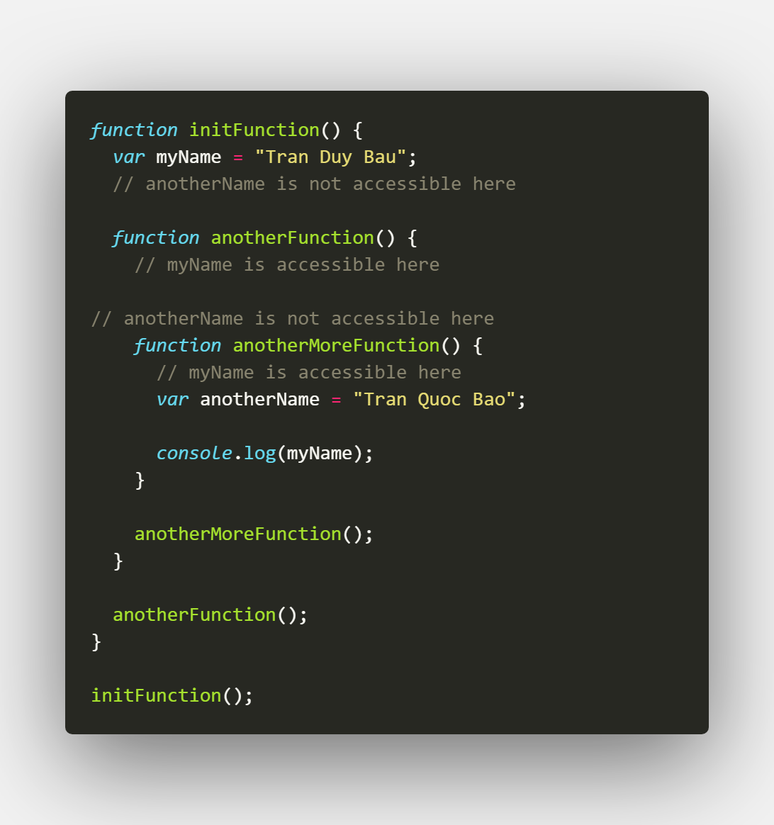 Ngoài định nghĩa trên, các bạn có thể đã gặp trường hộp này: Function Scope. Oke, cùng tìm hiểu nào!