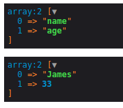[$keys, $values] = Arr::divide(['name' => 'James', 'age' => 33]);