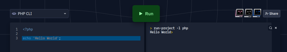 Các bạn truy cập vào trang này: PHP CLI Online Compiler
