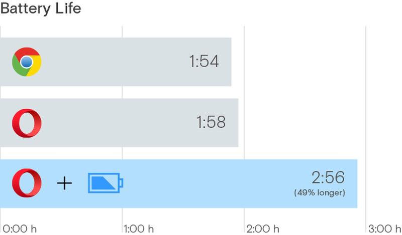 Opera đã so sánh trình tiết kiệm pin với Chrome và thấy nó giúp kéo dài thời lượng pin thêm 50% .