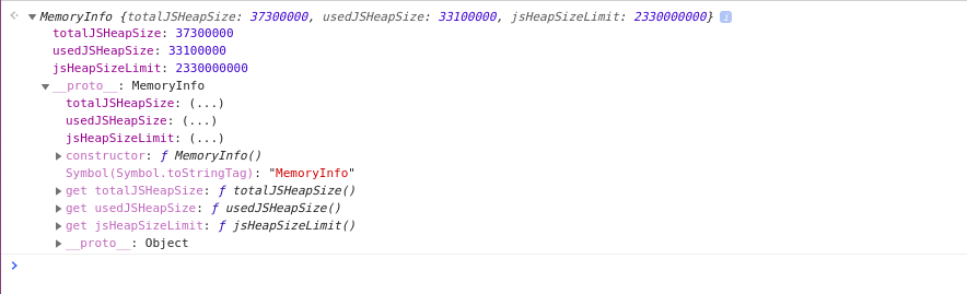 Nếu vấn đề hiệu suất của bạn còn phức tạp hơn nữa và bạn đang rò xem vùng nhớ bị sử dụng mà không phải mong muốn của mình bạn có thể sử dụng: console.memory (thuộc tính , không phải chức năng ) để kiểm tra trạng thái vùng nhớ HEAP.
