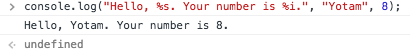 Khi loging bạn có thể dùng biến để thay thế string. ví dụ (%s = string, %i = integer, %o = object, %f = float).