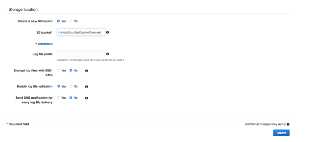 aws cloudtrail create-trail --name my-test-cloudtrail --s3-bucket-name mytests3bucketforcloudtrail
