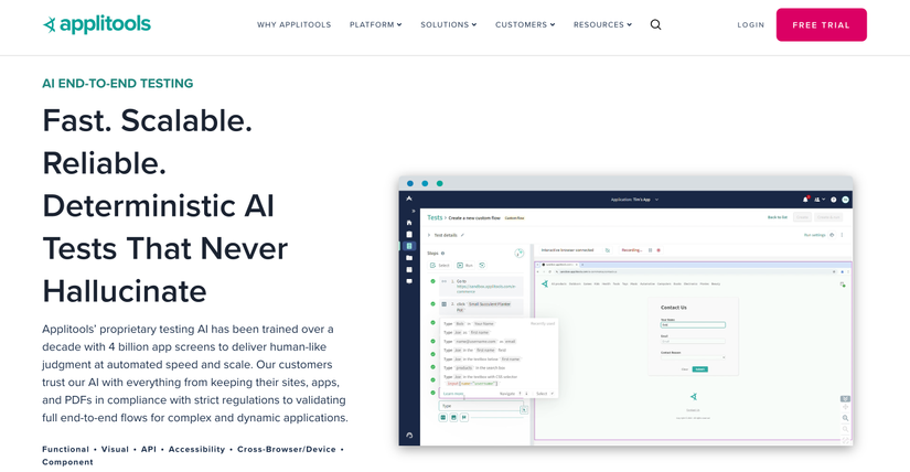 - Đặc điểm: Hỗ trợ kiểm thử tự học, tạo assertion tự động và tương thích đa môi trường.