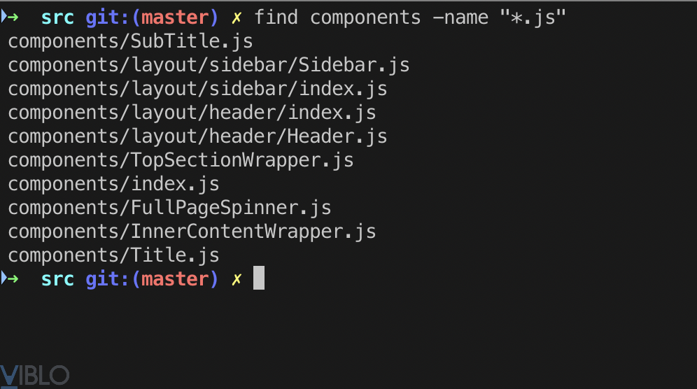 Lệnh find cũng cho phép bạn tìm kiếm cùng loại tệp trong một thư mục (và thư mục con của nó). Ví dụ: lệnh sau sẽ tìm kiếm tất cả các tệp .js trong thư mục làm việc hiện tại của bạn.
