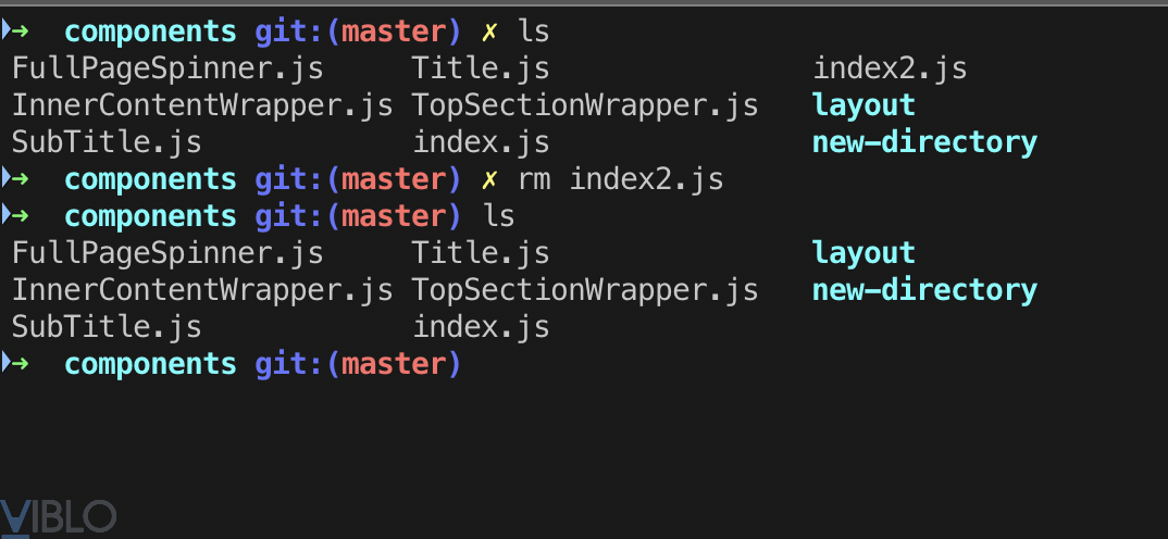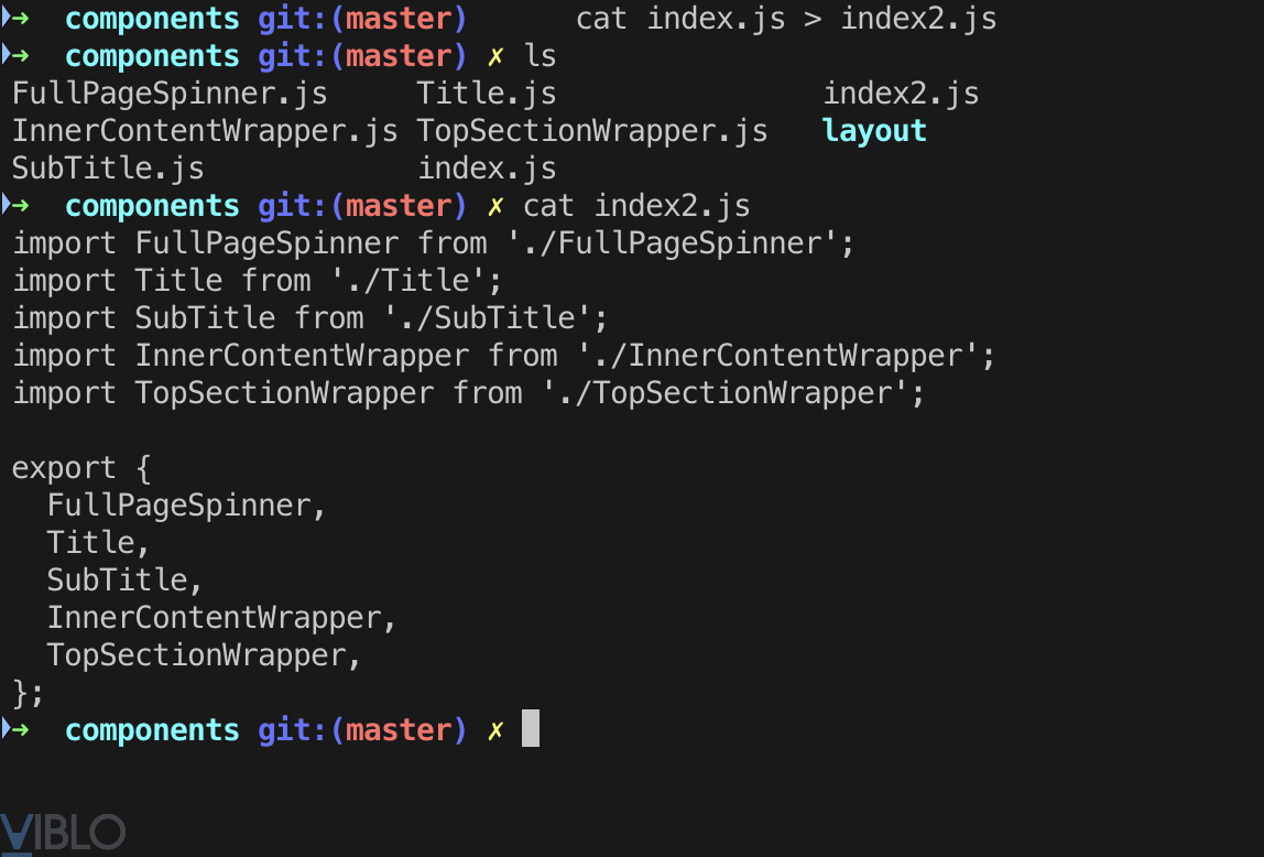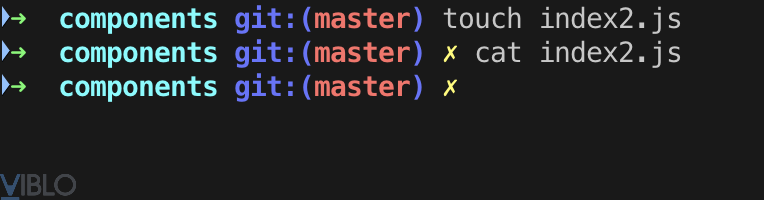 Lưu ý cách chúng tôi sử dụng touch để tạo tệp và cat để nhìn vào bên trong tệp. Vì tệp index2.js mới tạo trống, cat không trả về gì.