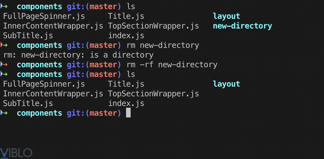 Theo mặc định, lệnh rm không xóa thư mục. Bạn cần phải thêm -rf để xóa thư mục.