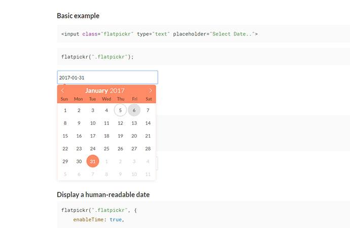 Thư viện này dễ dàng cho phép người dùng lựa chọn ngày tháng, thời gian để thêm vào form của mình. Việc customize options cũng rất đơn giản.