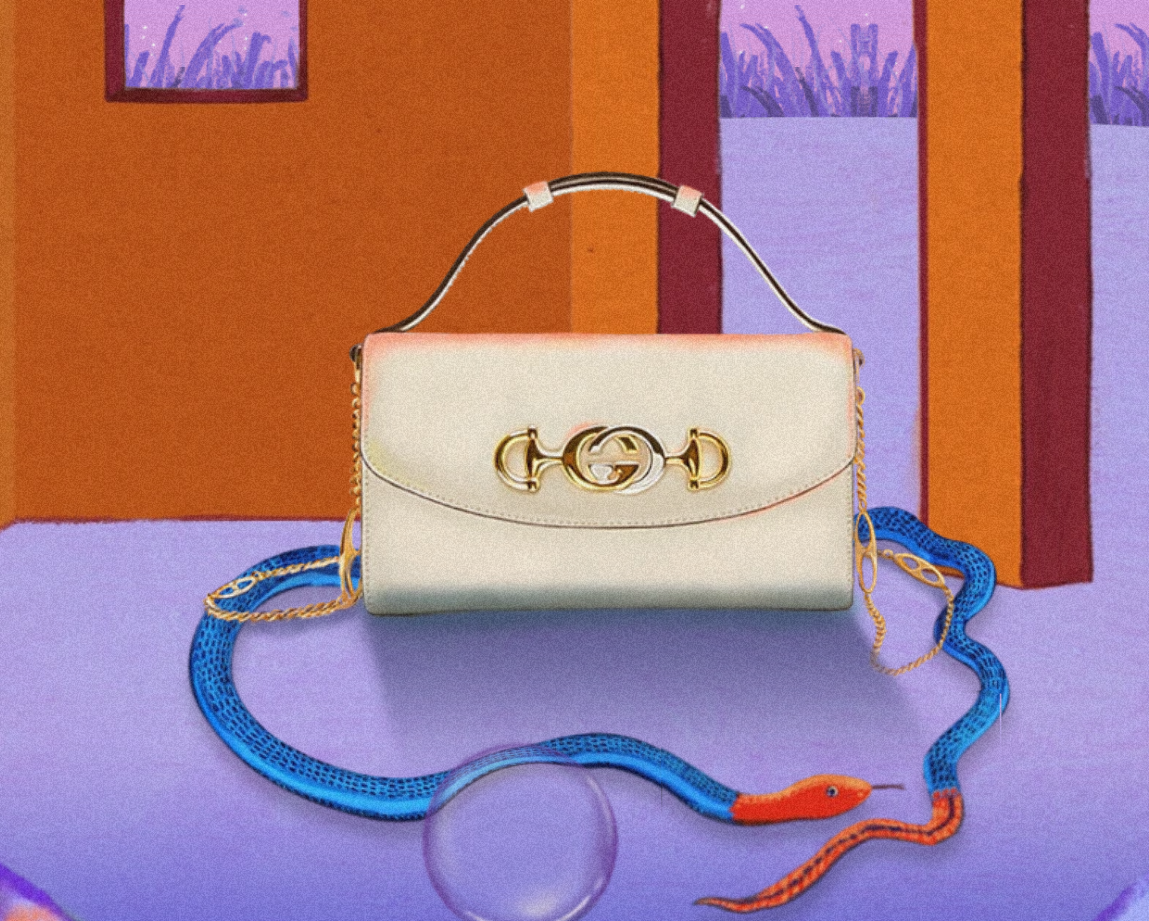Gucci Zumi là một ví dụ hoàn hảo và nổi tiếng. Nó thực hiện các minh họa siêu thực với các bức ảnh sản phẩm của họ.