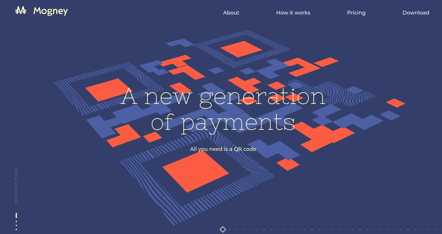 Mogney.com cũng triển khai kỹ thuật trực quan hóa dữ liệu trừu tượng. Bằng cách này, nó tạo ra một cảm giác sâu sắc và độc đáo.