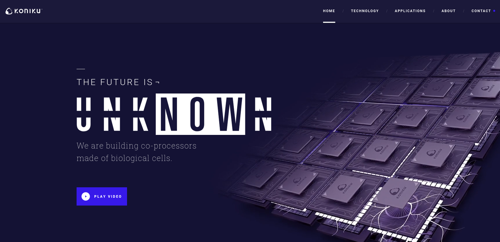 Trang web của Koniku thể hiện một cách hoàn hảo các bộ đồng xử lý của nó đang hoạt động. Nó hiển thị dữ liệu trừu tượng để thu hút người dùng đầu tiên.