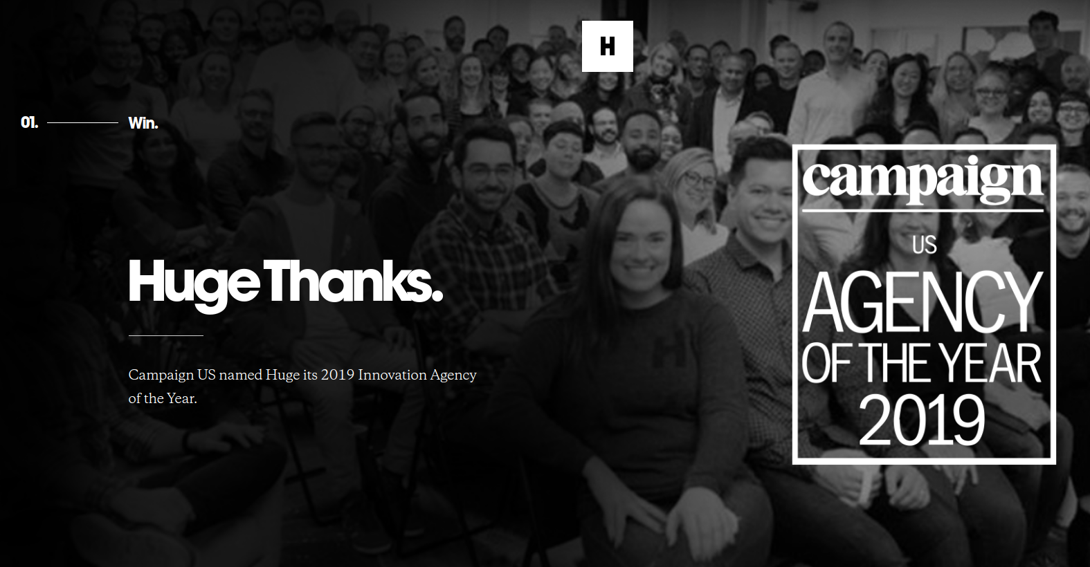 Huge Inc là một ví dụ điển hình về việc kết hợp phông chữ đậm với hình ảnh minh họa.