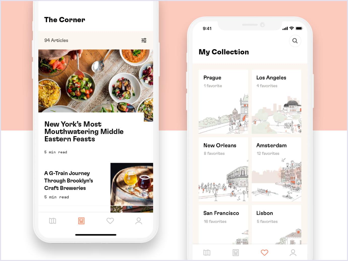 Các nhà phát triển của Dorsia hoàn toàn biết cách triển khai xu hướng UX mới nhất này trong ứng dụng du lịch của họ: