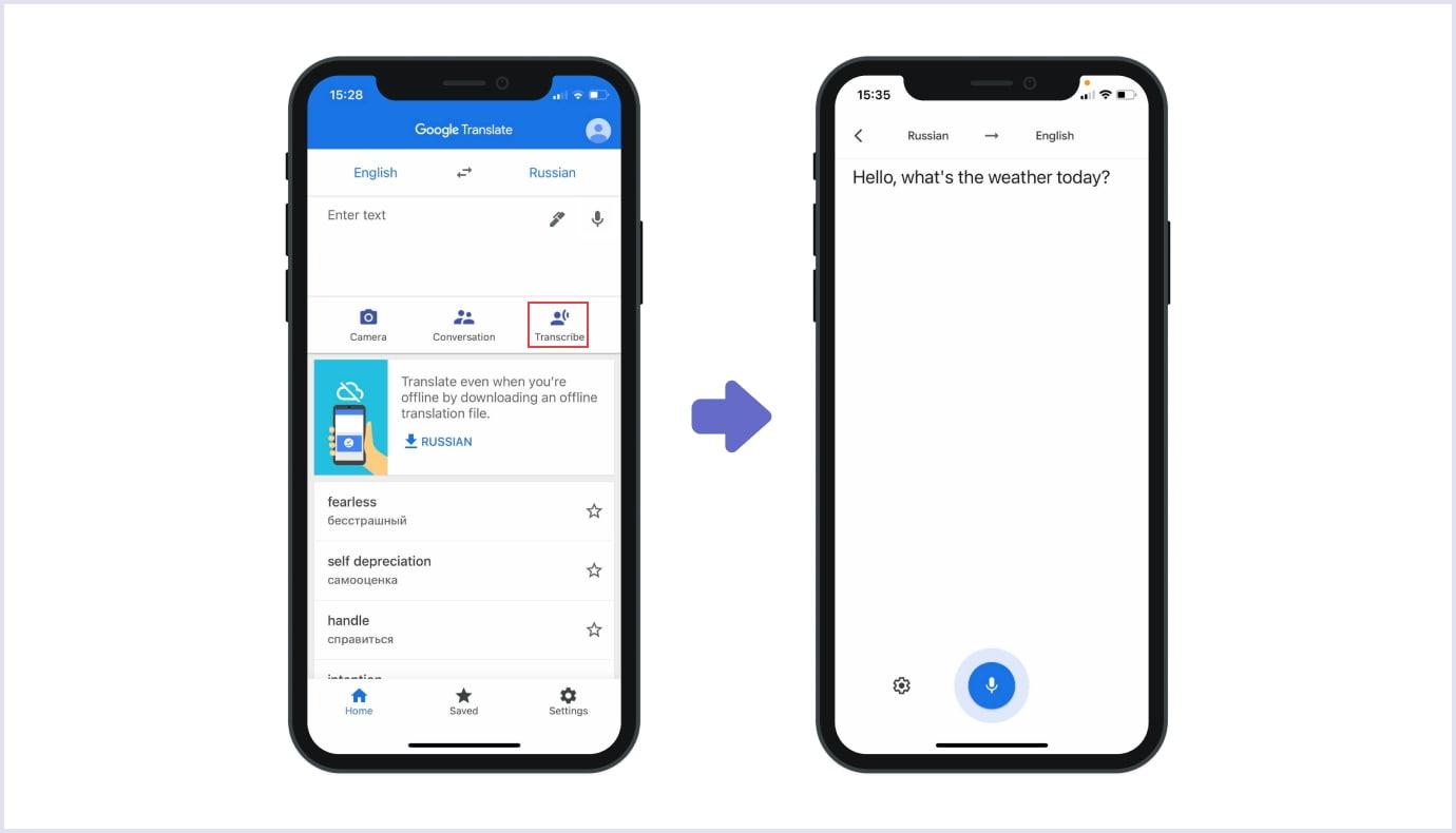 Ví dụ: ngày nay chúng ta có thể thấy hàng tá ứng dụng mà bạn có thể dịch một từ hoặc câu sang bất kỳ ngôn ngữ nào khác. Nó hoạt động theo cách sau. Bạn nhấp vào một nút và thiết bị bắt đầu ghi âm giọng nói của bạn và dịch bài phát biểu của bạn. Bằng cách này, bạn có thể dễ dàng giao tiếp với những người không biết ngôn ngữ của bạn.