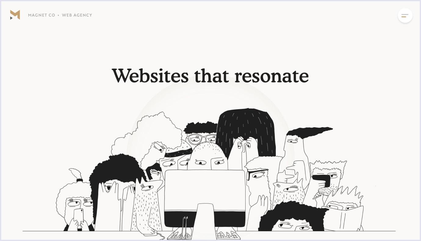 Một web agency Magnet Co biết cách tạo cho trang web của họ một cái nhìn đặc biệt với sự trợ giúp của các hình minh họa độc đáo và vô lý.