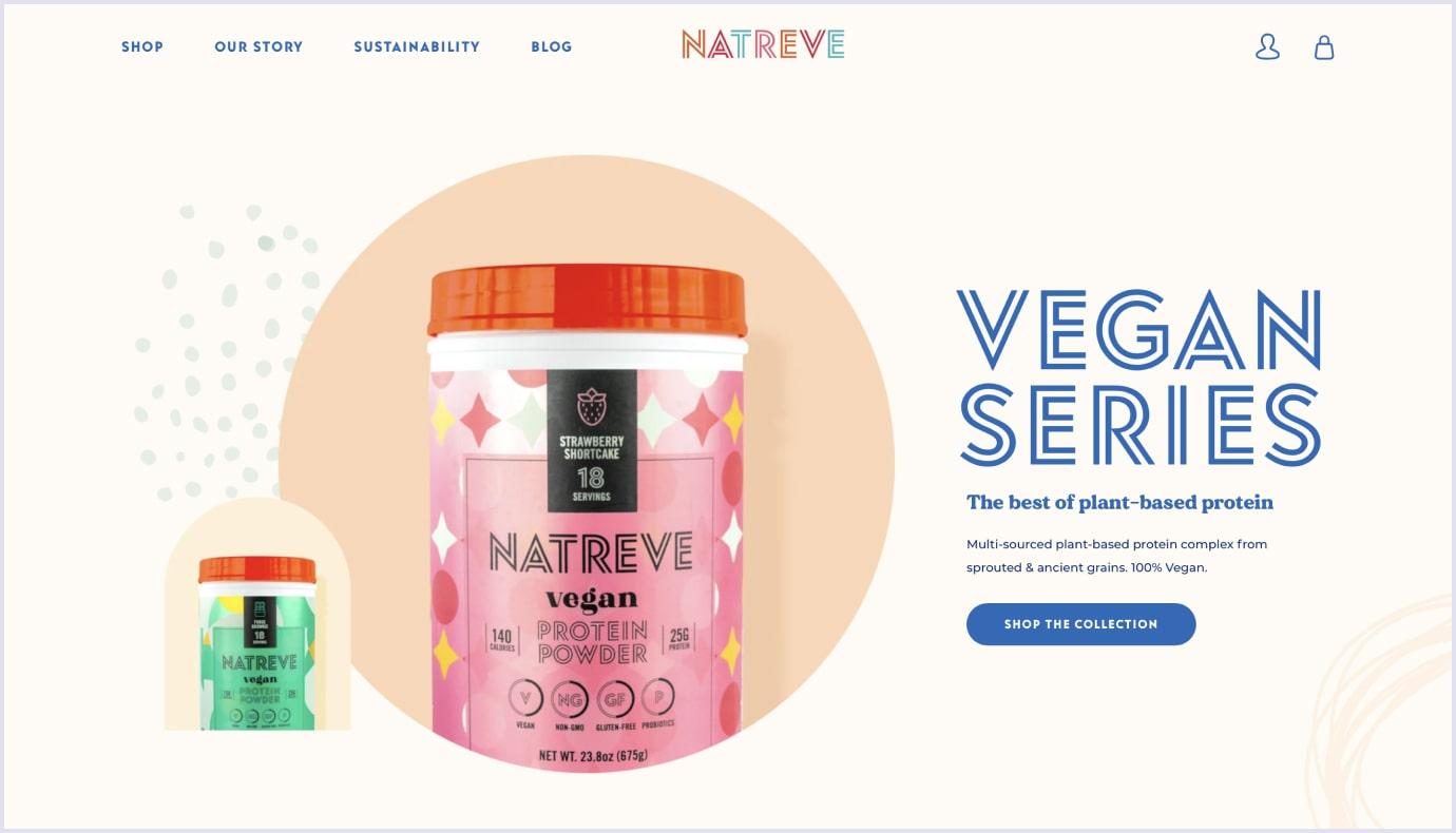 Natreve đã xây dựng một ví dụ hoàn hảo về việc sử dụng màu phấn trên trang web của họ.