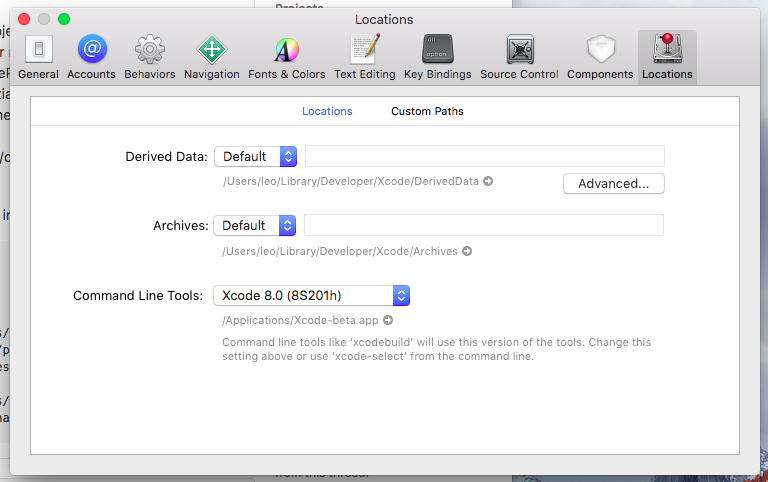 Bạn có thế xem qua issue trên Github này.Mở Xcode lên, chọn menu Xcode, chọn Preferences, và click vào tab Location. Chọn phiên bản Xcode của bạn ở dropdown rồi thoát Xcode.