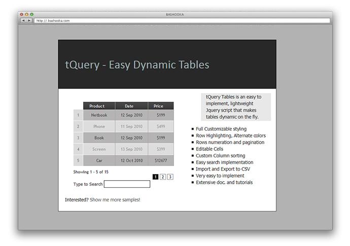 tabsheet.js là một plugin jQuery giúp bạn dễ dàng tạo kiểu HTML table cùng với một số tùy chỉnh đơn giản.