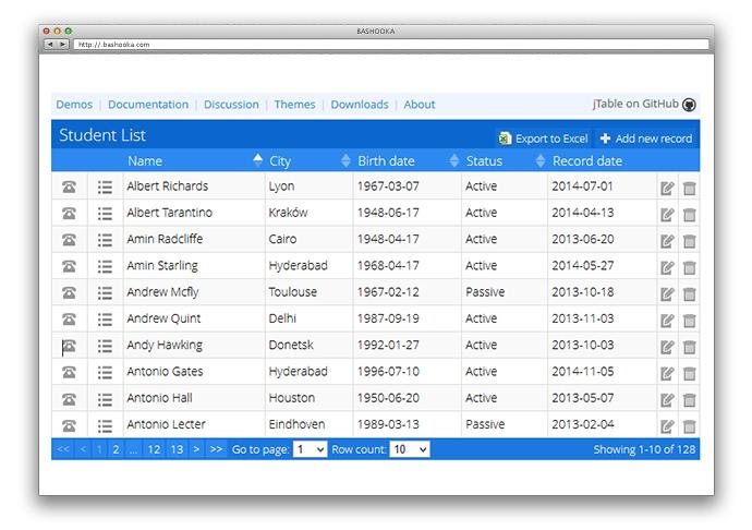 Link tham khảo: http://www.jtable.org/