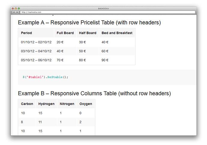 jQuery ReStable là một plugin jQuery rất đơn giản và nhẹ (~ 1Kb), hỗ trợ trong việc chúng thu gọn table vào danh sách ul.