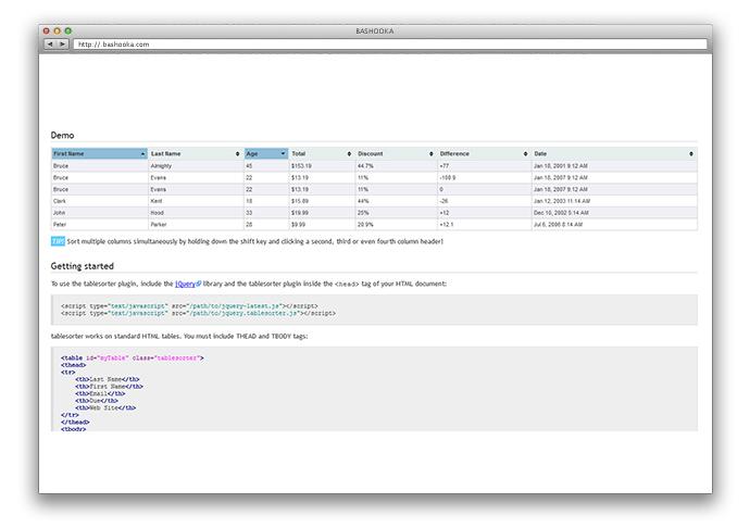 framesorter là một plugin jQuery để biến một bảng HTML tiêu chuẩn với các thẻ THEAD và TBODY thành một bảng có thể sắp xếp mà không cần làm mới trang. Framesorter có thể phân tích thành công và sắp xếp nhiều loại dữ liệu bao gồm dữ liệu được liên kết trong một ô.