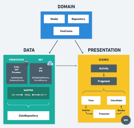CleanRXArchitecture là một dự án dựa trên các nguyên tắc của clean architecture và MVI (model view intent) cho lớp presentation.