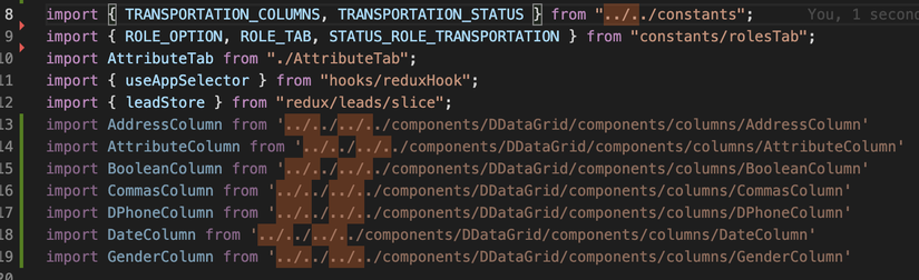 Với ví dụ trên thì chỉ có vài dòng nhưng nếu sử dụng nhiều functions, biến hoặc các components từ các folder khác thì chỉ với những dòng import đã lên tới hơn 50 dòng