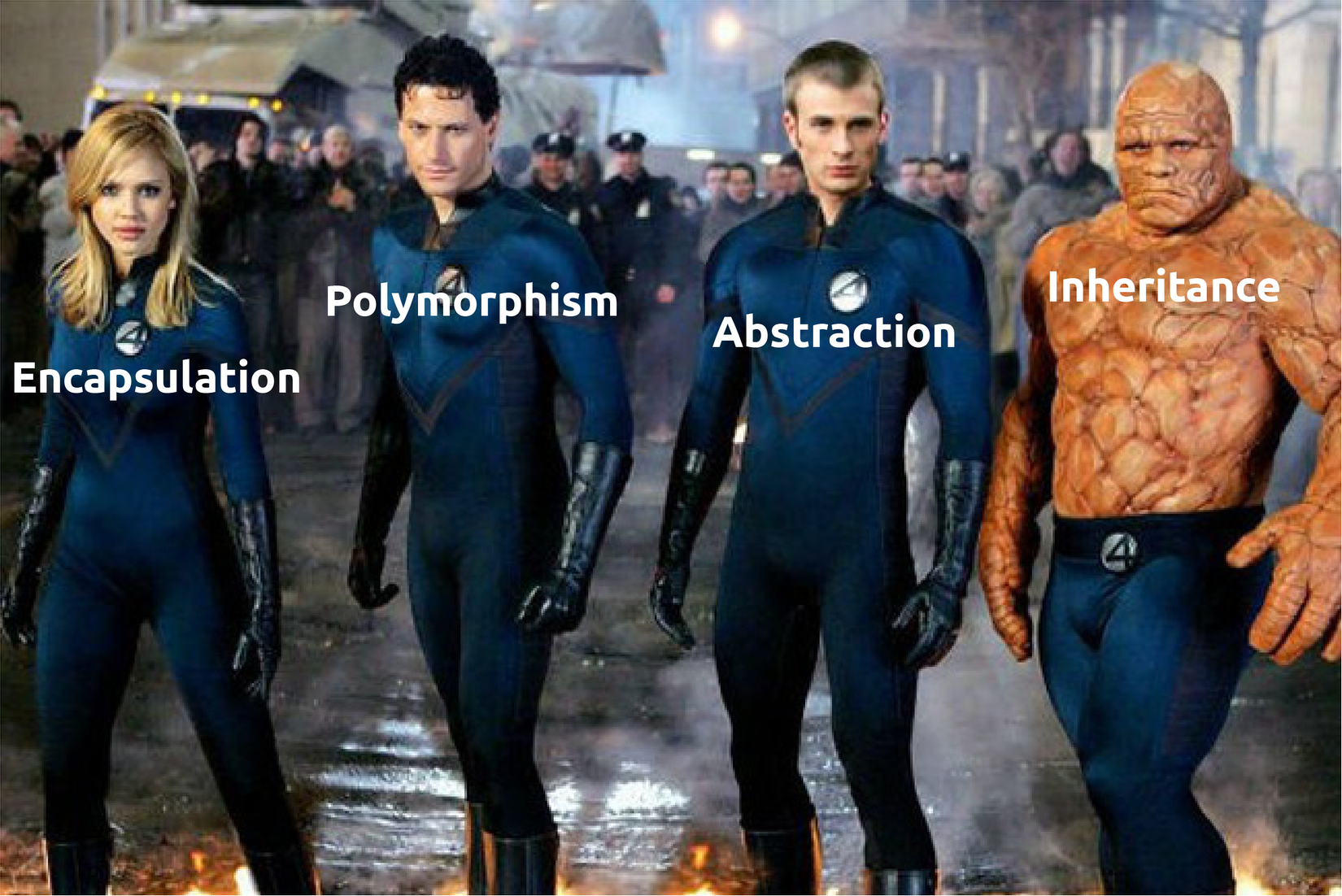 Tèo: Á đ*, bài viết của tao mà. Tưởng thế nào, thôi vào vấn đề. Mày xem "Bộ tứ siêu đẳng - Fantastic Four" chưa? Hôm nay tao sẽ phân tích 4 tính chất của lập trình OOP dựa trên 4 nhân vật của phim này.