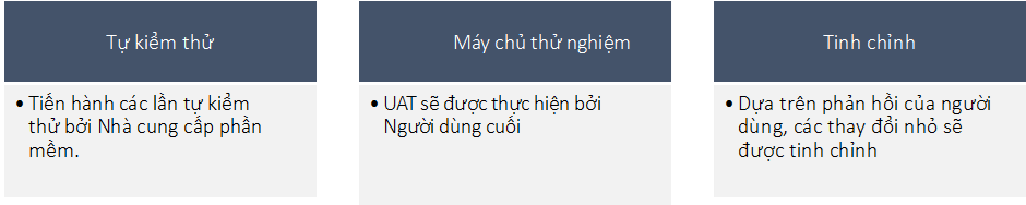 Kiểm thử Use-Case - Nhóm phát triển và bên ngoài đảm bảo tất cả các quy trình và tùy chỉnh được thiết lập trong giai đoạn thực thi quy trình đang hoạt động theo các yêu cầu được thiết lập trong BRD.