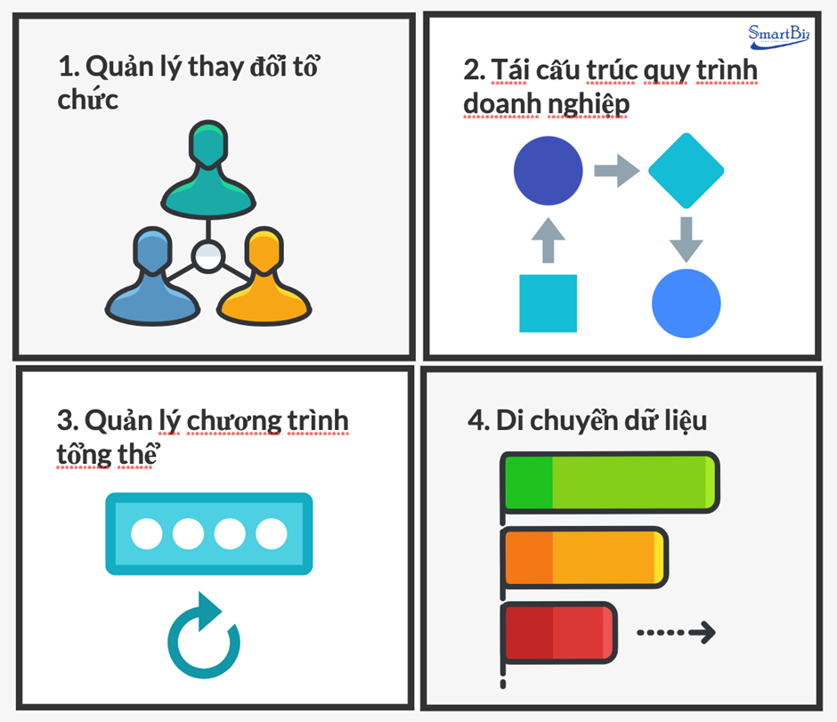 Sau đây là 4 trụ cột quan trọng cần phải có khi triển khai công nghệ doanh nghiệp và Cách triển khai ERP của các doanh nghiệp lớn thành công. Nếu không có bất kỳ mục nào trong số các mục này, dự án của bạn sẽ có thể thất bại:
