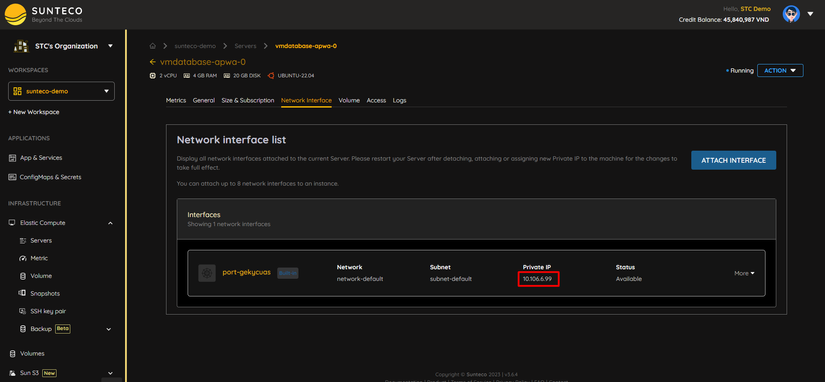 Truy cập VM và copy Private IP: