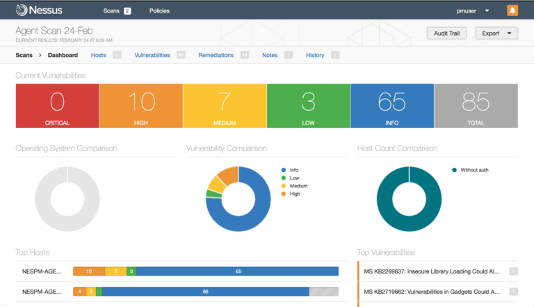 Nessus là công cụ chuyên dùng để pentest hệ thống, rà quét lỗ hổng bảo mật, và mã độc. Công cụ này cho phép bạn dùng thử miễn phí. Điểm khác biết ở công cụ này so với các công cụ pentest khác là Nessus chứa các plugin về bảo mật hàng đầu thế giới, có thể rà quét lỗ hổng trong windoes, linux một cách toàn diện.