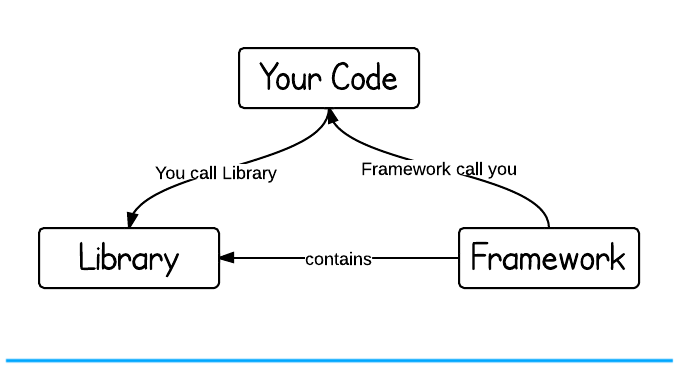 Để có thêm một chút kỹ thuật thay vì so sánh hai loại bánh sandwich khác nhau, một thư viện về cơ bản cho phép bạn kiểm soát dòng chảy của ứng dụng. Khi bạn sử dụng thư viện, bạn là người gọi thư viện nhưng khi bạn sử dụng framework, nó sẽ gọi cho bạn. Điều này được gọi là đảo ngược của kiểm soát.