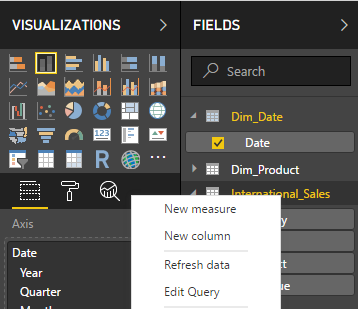 Bước 4: Click phải vào dữ liệu của bạn, chọn “New measure” nhập vào định dạng bên dưới. Định dạng mới này bây giờ cũng có thể được sử dụng để vẽ biểu đồ với công thức đo lường từng năm đến nay để so sánh hiệu suất giữa các năm.