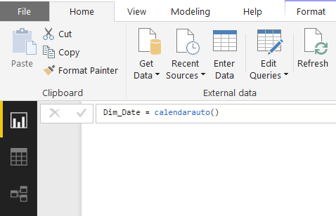 Bước 1: Đầu tiên, tạo một bảng ngày tháng, sử dụng chức năng “New Table” và thêm vào dòng lệnh: Date=calendarauto(). Điều này sẽ tạo ra một bảng với cột ngày tháng chứa tất cả các ngày dựa vào thông tin trong tệp dữ liệu của bạn.