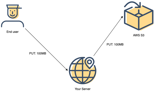 Hãy thử tưởng tượng bạn PUT một file 100MB lên S3, bạn phải gửi nó lên server của bạn rồi server mới gửi lên S3. Vậy là thời gian xử lý dài gấp đôi và cũng tương tự với GET.
