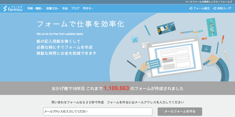 Đây là công cụ do công ty Future Spirits Co., Ltd. phát triển, với công cụ này bạn không cần phải có kiến thức chuyên môn mà vẫn có thể tạo ra biểu mẫu một cách đơn giản với các thao tác kéo thả trực quan.