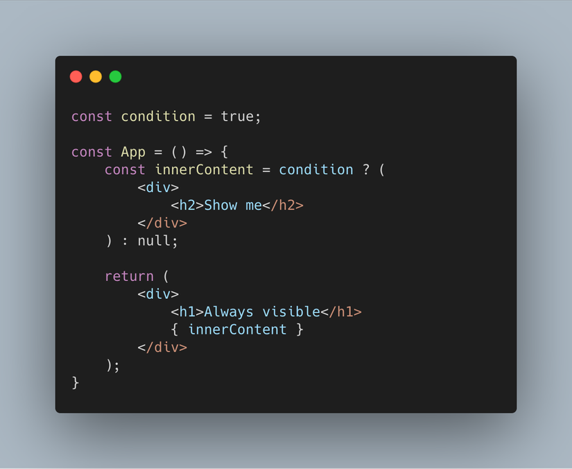 Cách viết ở trên có sẽ dễ rơi vào tình trạng mất kiểm soát khi có nhiều hơn 1 câu điều kiện rút gọn ở trước hàm render. Bạn phải mò mẫm lại các hàm bên trong để biết element nào sẽ được render.