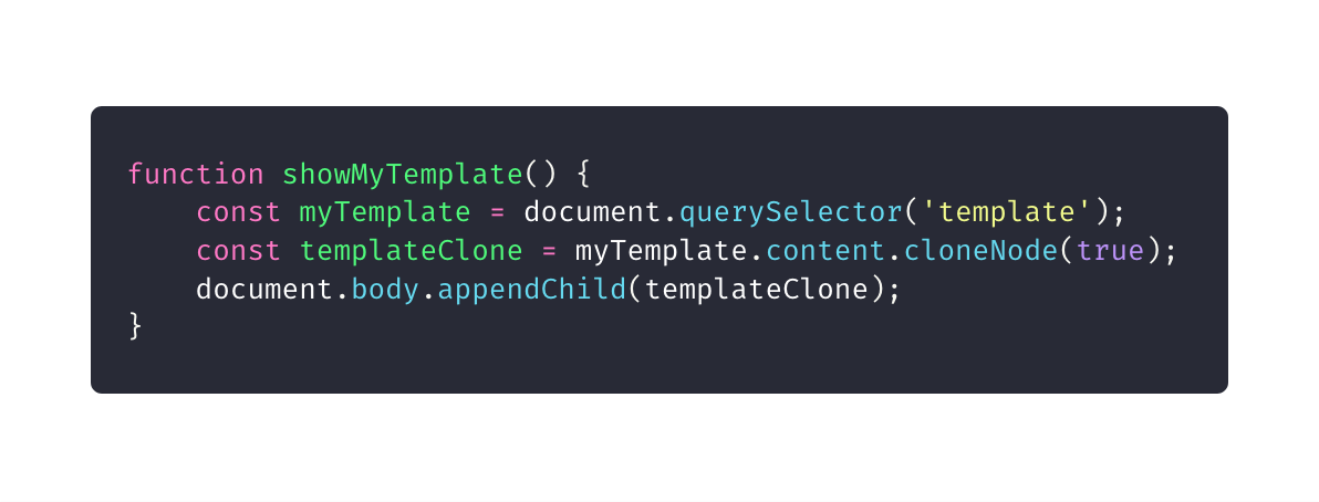 Thẻ <template> chứa mà HTML nhưng không hiển thị nó ra. Sử dụng thẻ <template> khi có mã HTML bạn muốn sử dụng lại nhiều lần. Để hiển thì thì cần sử dụng JS.
