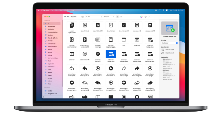 SF Symbols là một tập hợp hơn 2.400 biểu tượng mà bạn có thể sử dụng trong ứng dụng của mình. Chúng có thể định cấu hình với nhiều trọng lượng và kích thước để thích ứng với thiết kế của bạn.