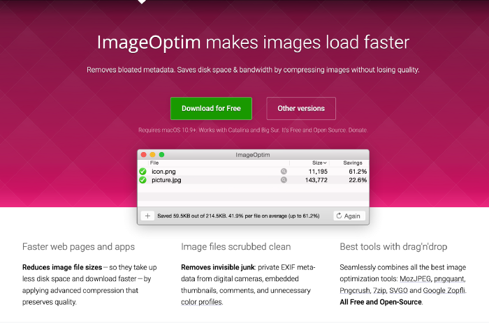 Image Optim làm cho việc này trở nên dễ dàng với chức năng kéo và thả. Công cụ này tốt đến mức bạn sẽ phải vật lộn để tìm ra sự khác biệt về chất lượng.