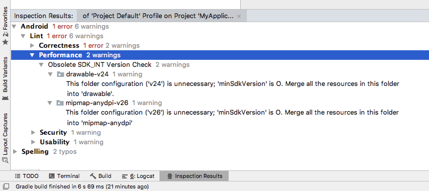Để chạy Lint, chọn Analyze -> Inspect Code ... từ thanh công cụ của Android studio. Nếu Lint phát hiện bất kỳ tài nguyên không được ước tính nào, thì nó sẽ liệt kê chúng trong cửa sổ Inspection Results.