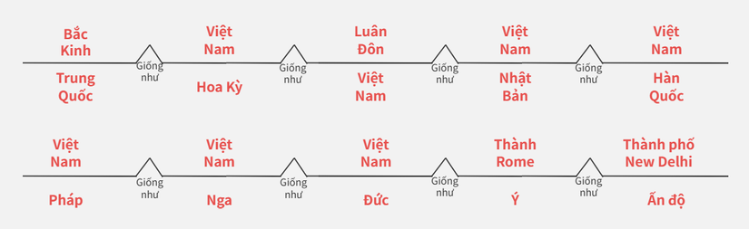 Biểu đồ này cho bạn thấy thủ đô của một số quốc gia lớn trên thế giới dưới dạng biểu đồ cầu, thuận tiện cho trí nhớ và sự tương phản của bạn.