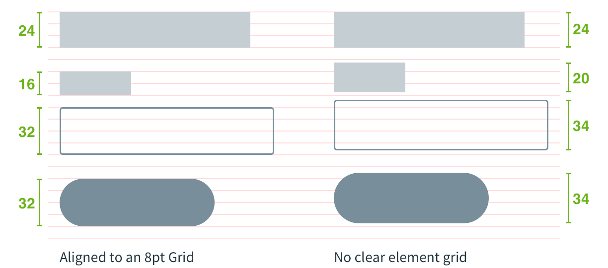 Hệ thống Grid 8pt, đó là việc sử dụng ít nhất là 8 đơn vị tăng theo cấp số cộng của 8.