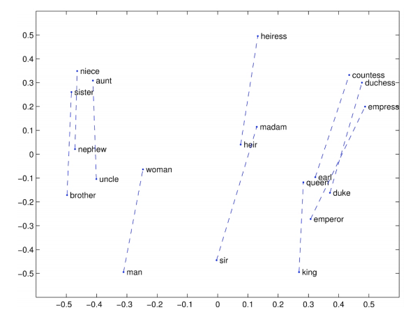 Hay như trong trường hợp này là mối quan hệ về giới tính. Các kết quả này hoàn toàn lấy từ mô hình word2vec.