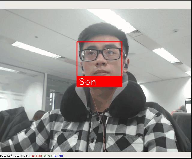 Sau khi đã locate được khuôn mặt và tên của người có trong database rồi ta sẽ tiến hành show nó lên camera: